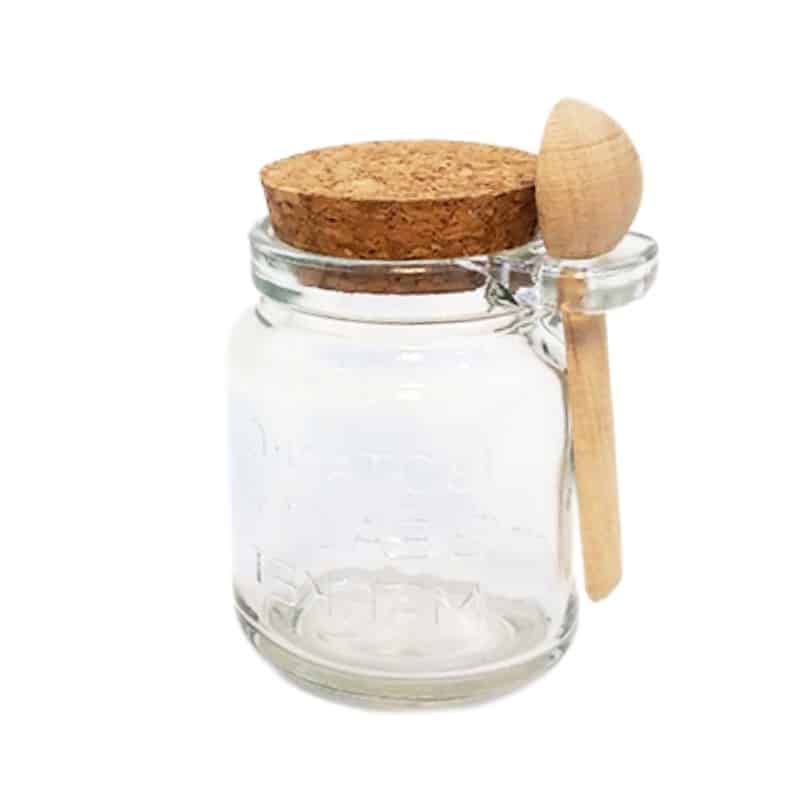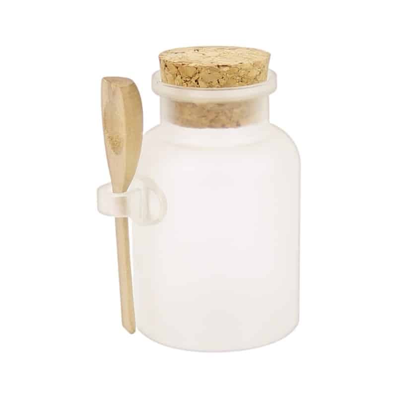 These bath salt jars feature wide mouth with natural wood cork, which makes you easy to get the body salt by spoon or your hand. It's also easy to clean and reusable.