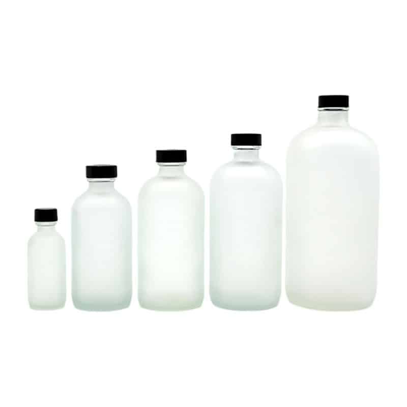 Wholesale price Boston round bottle Glass with a short curved shoulder in 30ml 60ml 120ml 250ml 500ml 750ml 1000ml full Size. Regular Color clear/amber/blue bottle Boston for hot sauce container bulk.