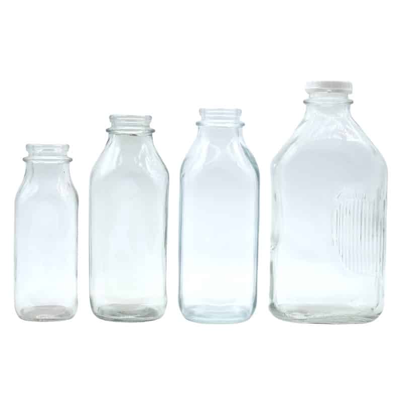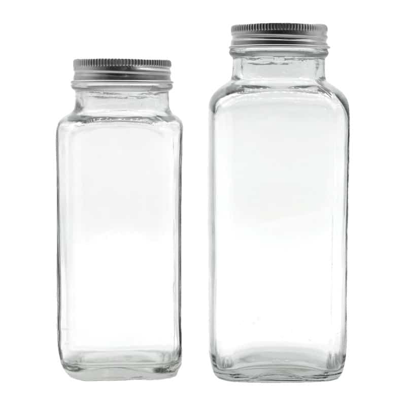 French square glass bottle is commonly used in milk, tomato juice, Pickle Juice, etc. Our factory wholesales family size Eco-friendly glass bottles to customers worldwide.
