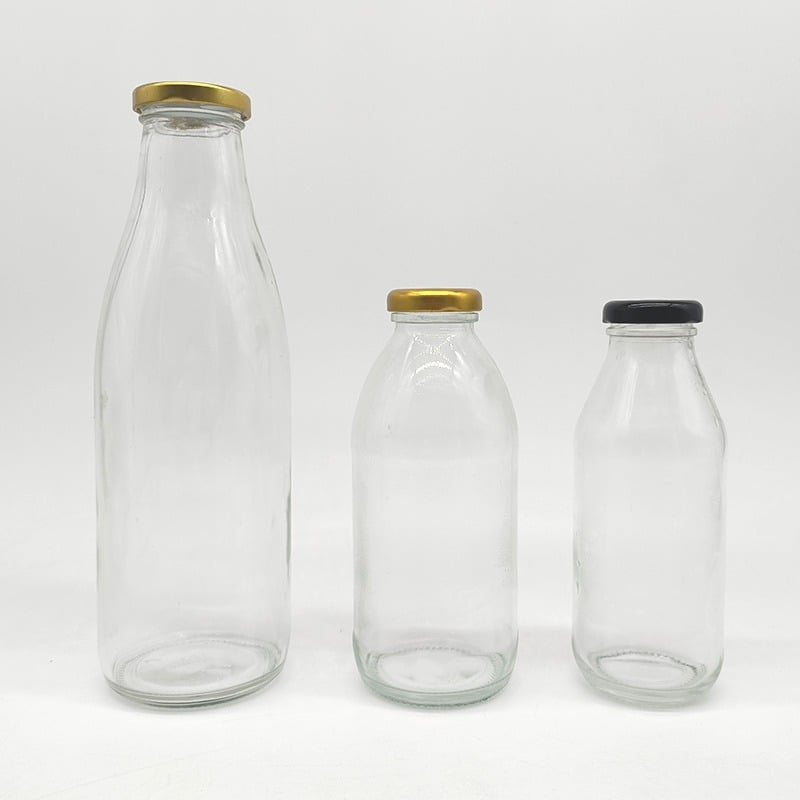 Lead-free clear glass milk bottle is fantastic for chocolate milk and oat milk. These dairy glass milk bottles are also commonly used for whole milk, reduced-fat milk, pineapple juice, and tomato juice, to supplement your daily nutrition.