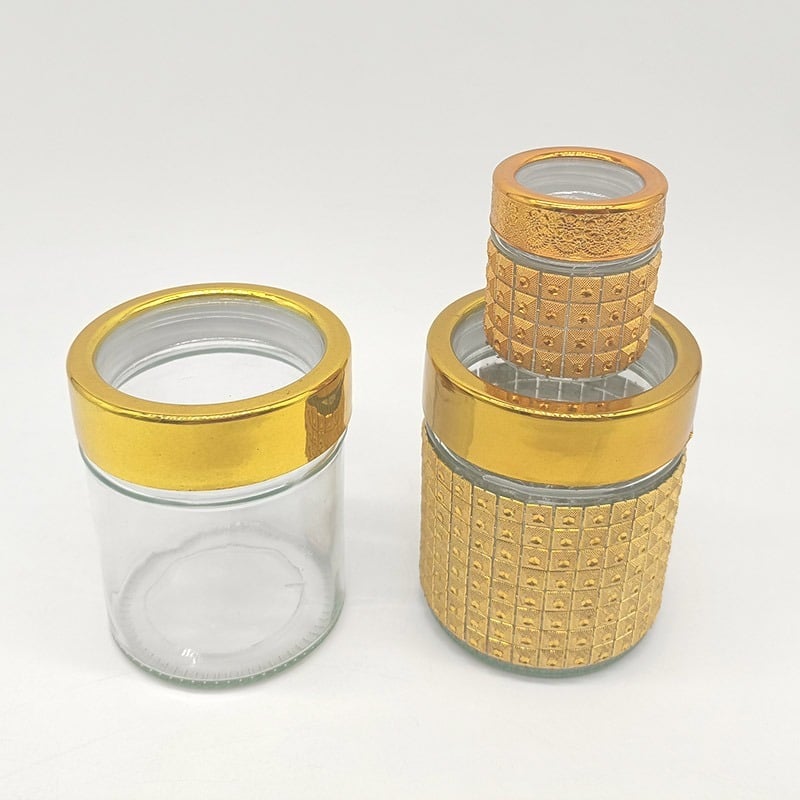 Both transparent glass jar and gold/silver/green decoration body of jar are in stock, ready to ship ASAP.