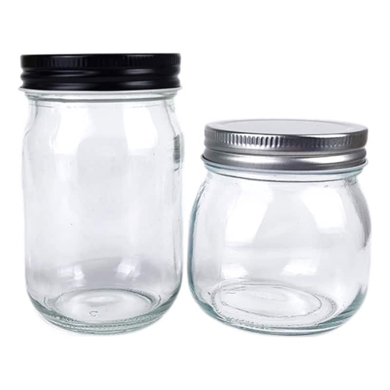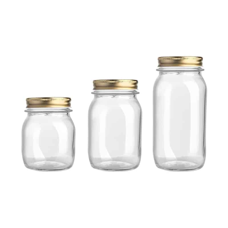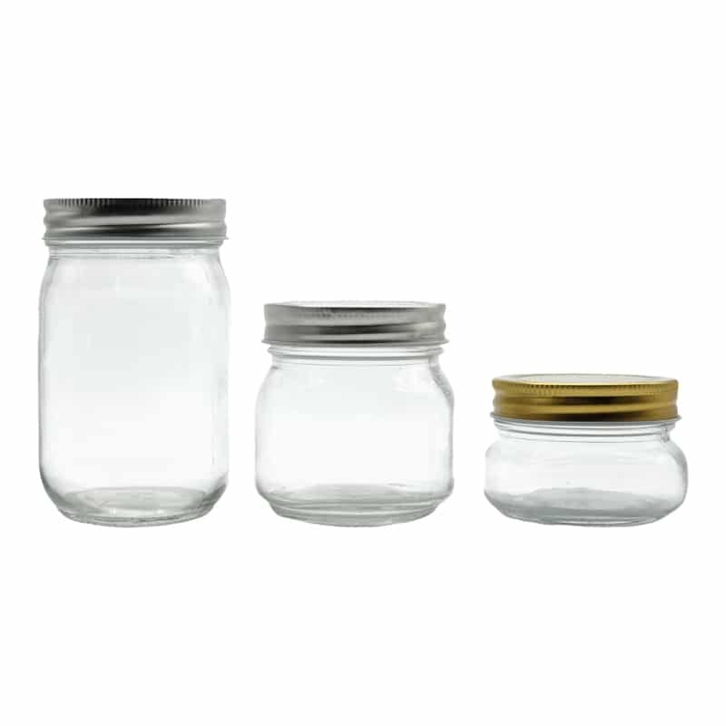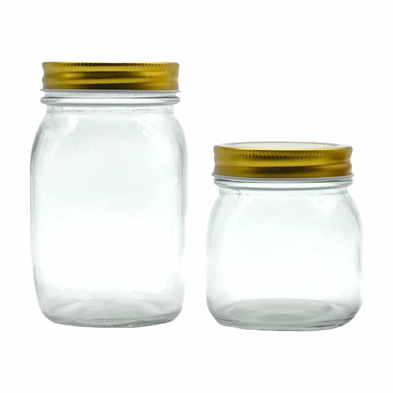 Our glass factory produces full sizes of mason canning jars to meet different customers all over the world. The capacity is from 50 ML to 2 Liters, all these food jars have continuous thread lids. Also, we supply gold, black, and silver metal screw lids to you. If you have requirements, we would like to custom logo on the glass jar.